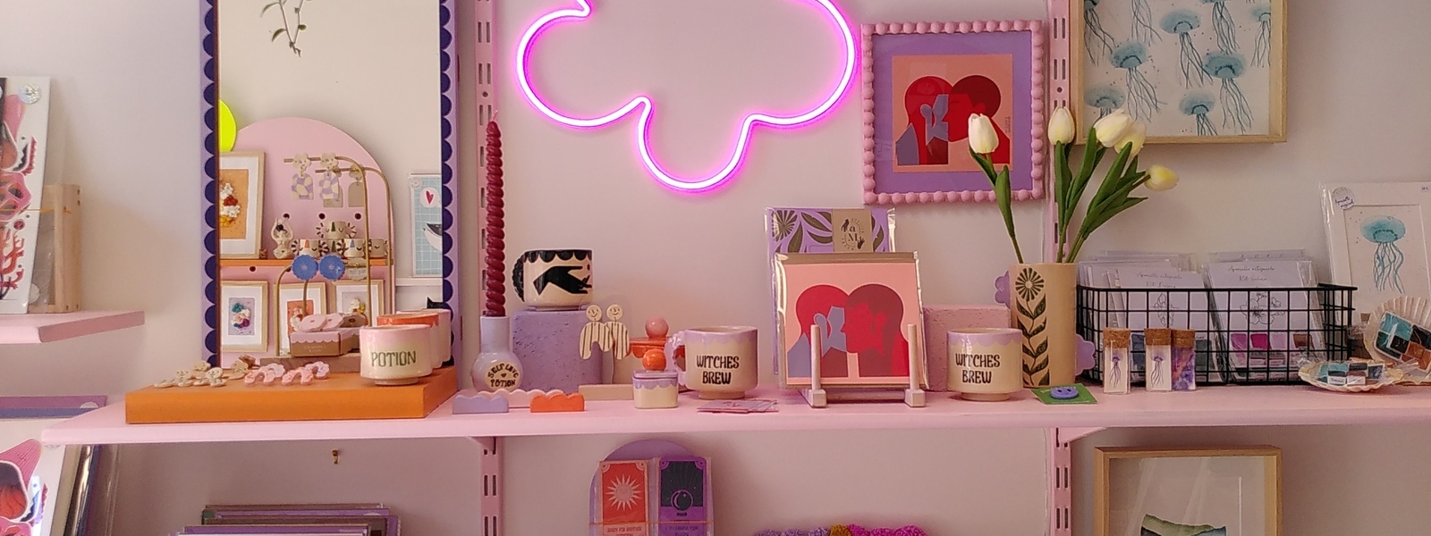 Dans la partie boutique, vous pouvez retrouver à la vente des créations locales comme de la céramique, des bijoux, des illustrations, des objets de décoration et des articles de mode. Dans la partie atelier, Atelier Magma (sérigraphies et céramiques) et Julie Petrolli (illustrations et céramiques) créent leurs collections et vous proposent des ateliers pour découvrir leurs techniques. Les ateliers de découverte d’artisanat sont ouverts aux adultes et aux enfants du mardi au samedi sur réservation.