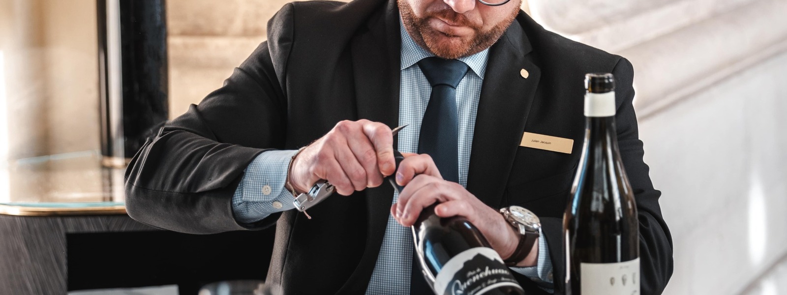 Julien Jacquin, directeur de la restauration de l'InterContinental Lyon - Hotel Dieu vous emmène, en petit groupe, à la découverte de trois vins associés à des mets choisis spécialement par le chef Mathieu Charrois.