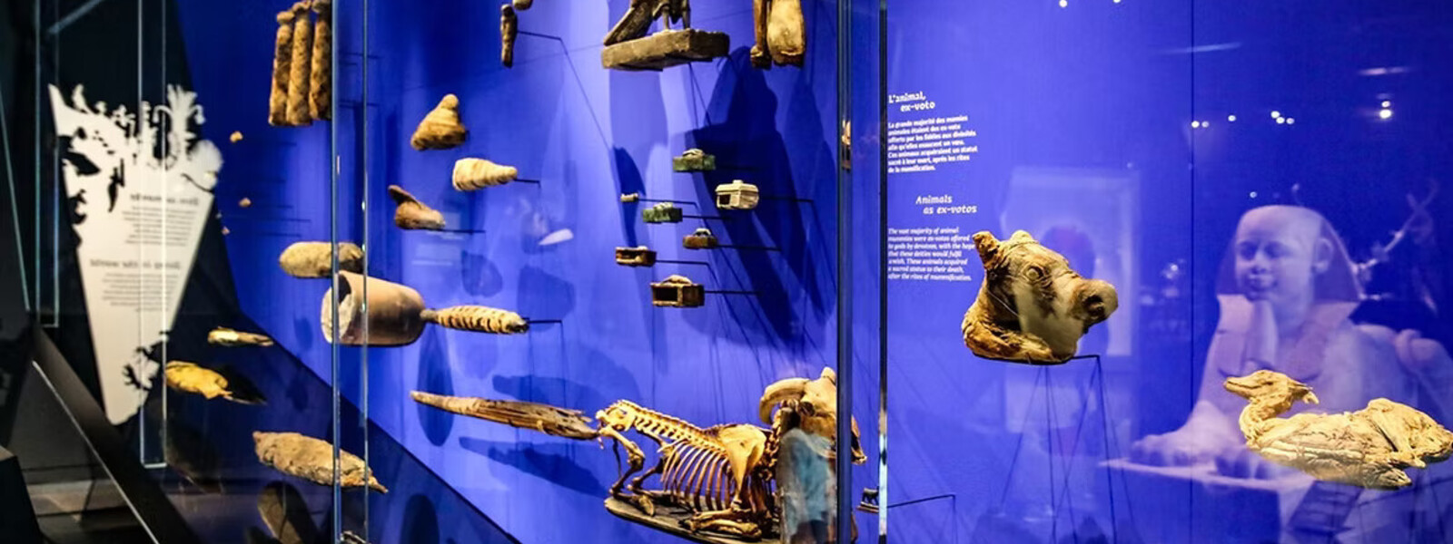 Le Musée des Confluences conserve aujourd’hui l’une des collections les plus importantes au monde de momies animales, auxquelles s’ajoutent des momies humaines et de nombreux artefacts prédynastiques. L’ensemble comprend plus de 5 000 objets provenant d’Égypte, dont plus de 3 000 témoignent des différentes périodes d’occupation de la vallée du Nil. Ces collections regroupent notamment des offrandes alimentaires, des statuettes, des bijoux et des outils.