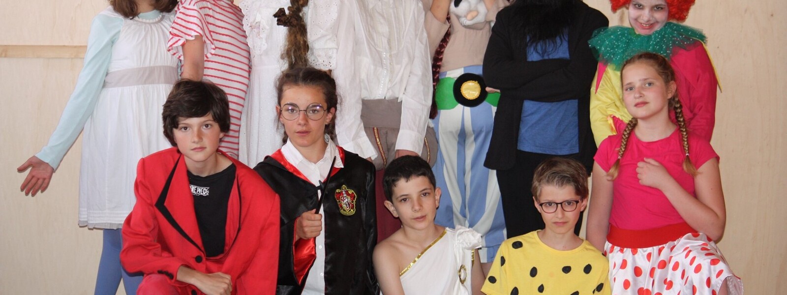 Le stage se conclue par une présentation des saynètes créées pendant la semaine devant les familles.