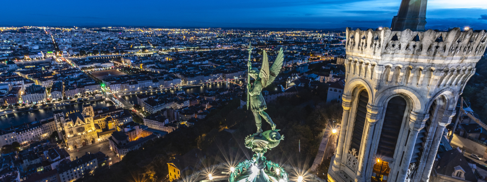 Depuis les toits de la basilique, à la nuit tombée, découvrez un panorama unique sur l’ensemble du site historique de Lyon, inscrit au patrimoine mondial de l’humanité.