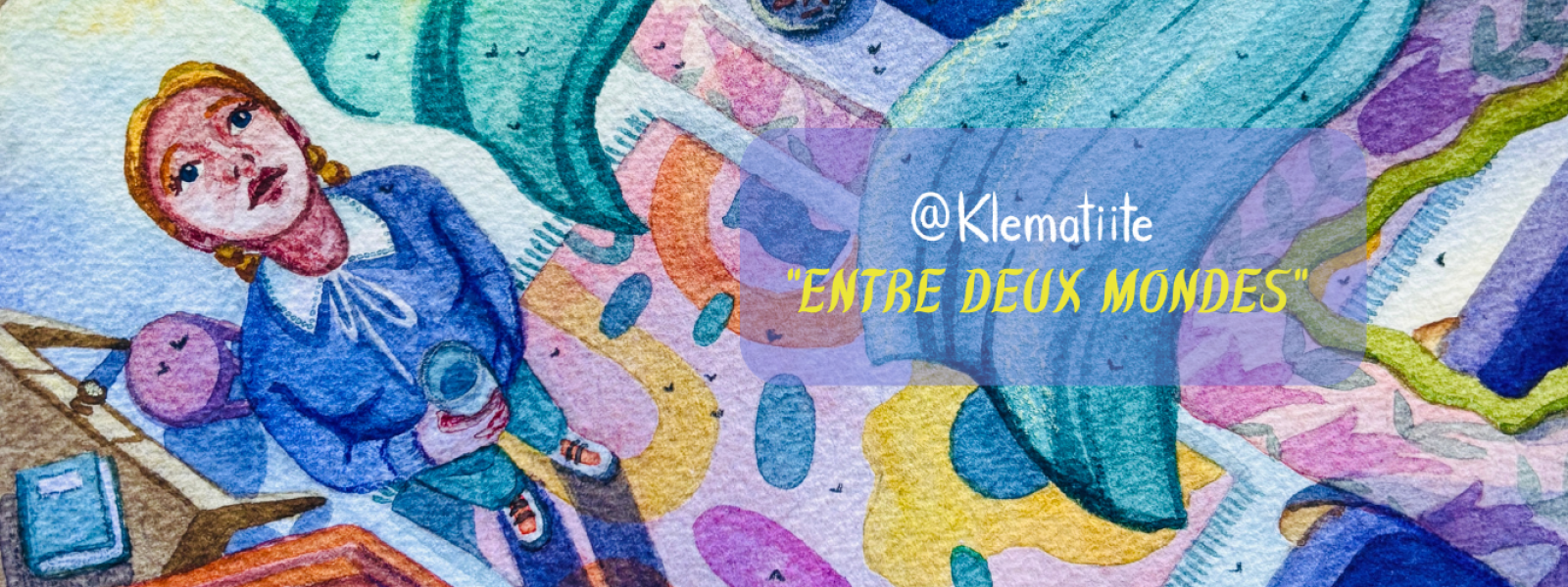 Venez découvrir les aquarelles de l'artiste lyonnaise Clémence Gagliardi alias Klematiite pour cette exposition "Entre 2 Mondes" chez Ames Soeurs du 20 janvier au 7 février 2026.