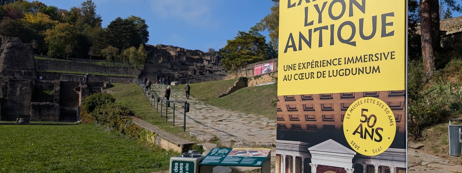 Grâce au mobilier pédagogique et ludique installé partout sur le site et à la réalité augmentée, plongez plus de 2000 ans en arrière. Découvrez la vie quotidienne des habitants de Lugdunum grâce aux descriptifs détaillés inscrits sur les panneaux pédagogiques et prolongez vos connaissances en scannant le QR code apposé sur ceux-ci. Il vous mènera vers une application web, où Lugdunum apparaît comme si vous y êtiez, grâce à un travail de reconstitution titanesque. En prime, à chaque point de géolocalisation du site, différents personnages défilent sur l'écran et racontent leurs histoires dans des mini-podcasts d'une à deux minutes.