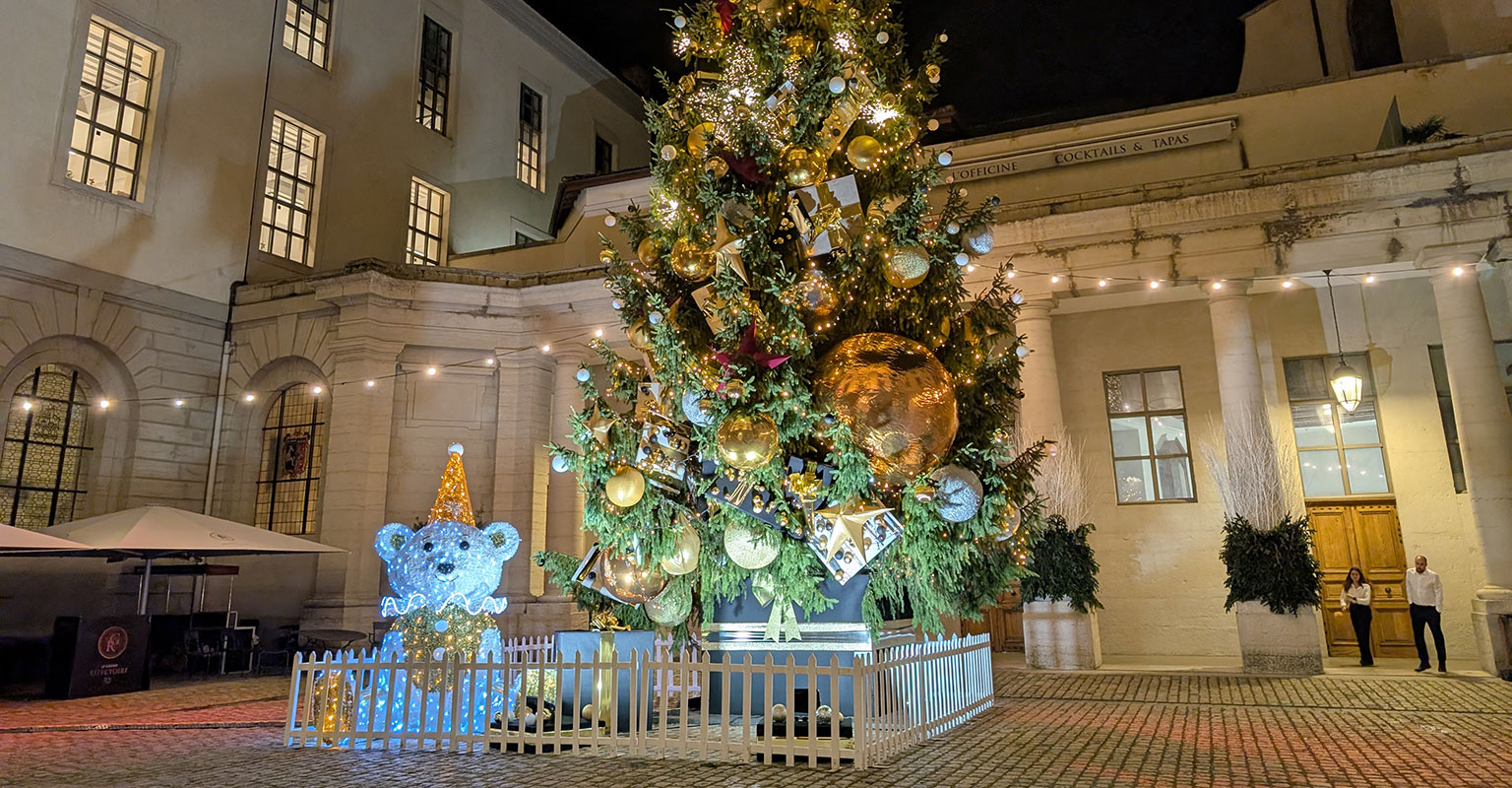 À quelques pas de là, rendez-vous au cœur du somptueux Grand Hôtel-Dieu, dont les cours se sont paré de leurs habits de lumière avec un sapin géant, des guirlandes par dizaine et des jouets illuminés. Ne manquez pas cette balade à ciel ouvert, mêlant patrimoine, ambiance féerique et expérience shopping.