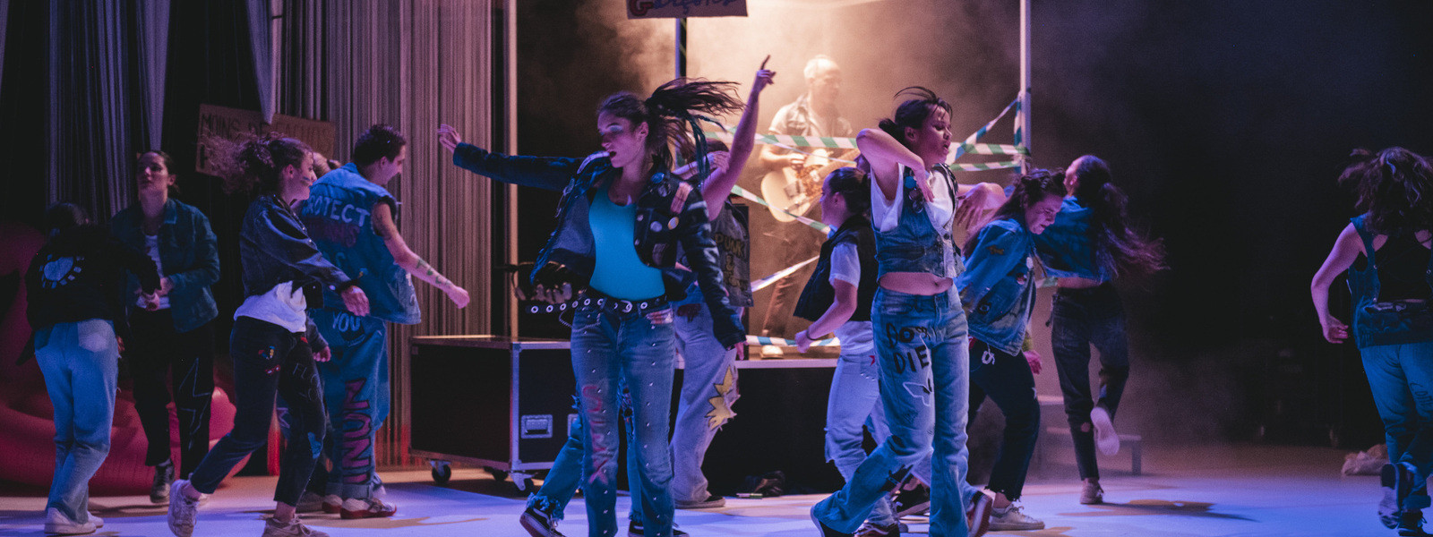 Cette création participative offre une tribune à une horde d’ados lumineuse et bouillonnante de vie, réunie par une intime conviction. Rock the Casbah, célèbre titre contestataire du groupe The Clash, est brandi ici comme un hymne à la résistance d’une jeunesse qui fait communauté. Sur une musique live, une quinzaine de jeunes forment un cortège et reprennent les codes et mouvements des foules. On retrouve l’ambiance folle d’un premier concert, celle euphorique d’un rassemblement sportif.