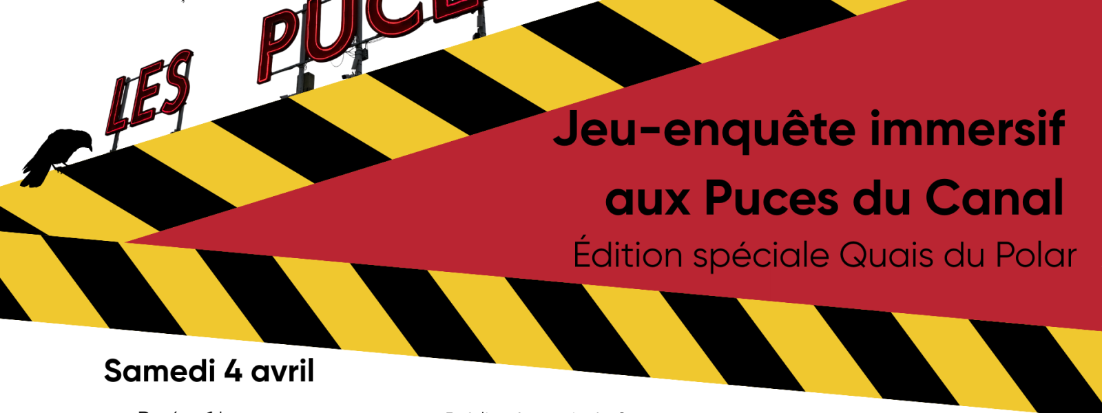 Le samedi 4 avril, à l’occasion du festival Quais du Polar, les Puces du Canal se transforment en décor de roman noir et vous invitent à vivre une enquête grandeur nature, à mener en équipe, au cœur du marché.